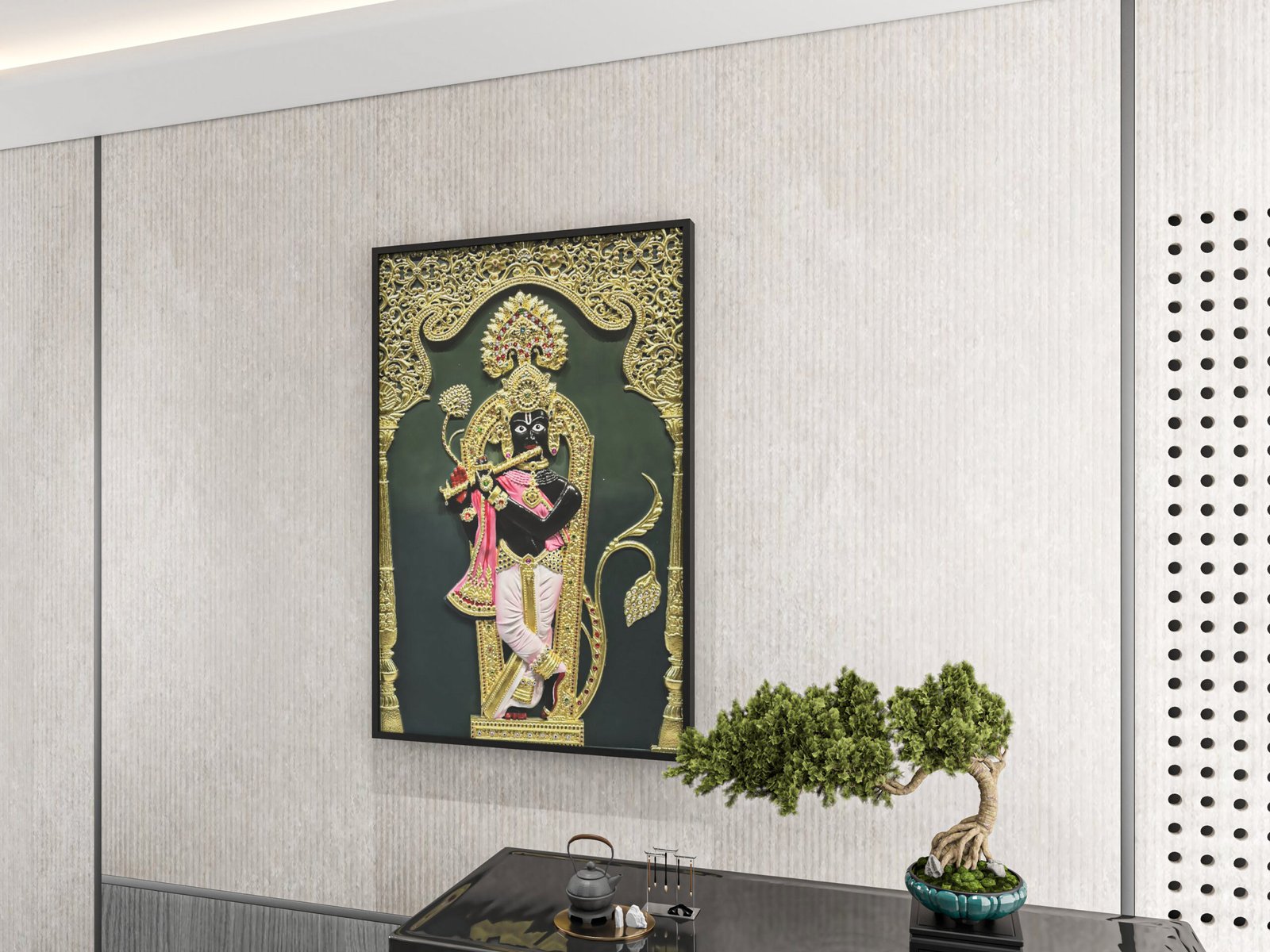 This is a Divine Textured Gopinath Ji Art, inspired by the timeless glory of Shree Gopinath Ji Maharaj and crafted with rich 3D detailing that elevates the traditional darshan into a luxurious visual experience. The radiant gold textures symbolize purity, prosperity, and spiritual strength, while the serene green backdrop represents harmony, renewal, and divine protection. The intricate ornaments and royal arch add depth, devotion, and elegance, creating a sacred aura that transforms any space with peace and divine presence. This artwork is ideal for the living room, pooja room, entrance foyer, meditation area, or office to bring blessings, positivity, and a premium traditional charm.