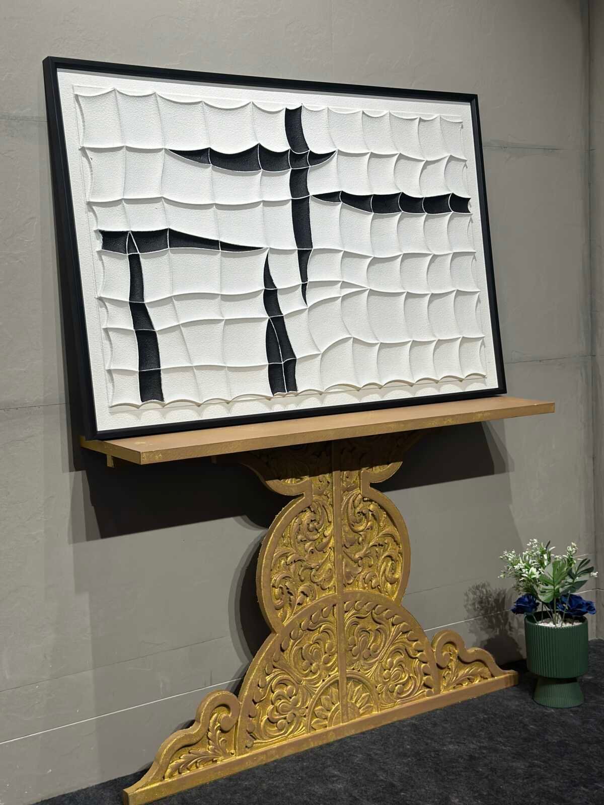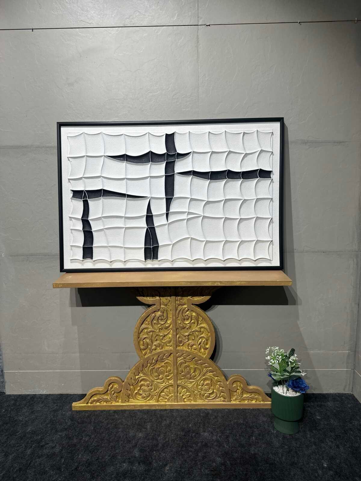 This is a Modern Minimal Art, inspired by abstract architectural forms and contemporary sculptural geometry. Crafted with soft, rhythmic 3D curves and bold black negative spaces, the artwork creates a striking interplay of tension and balance. The white surface symbolizes clarity, openness, and calm, while the deep black intersections represent grounding, strength, and focus. The sculpted texture adds refined depth and a luxurious tactile feel, making the piece both visually soothing and architecturally bold. Perfect for living rooms, office spaces, hotel lobbies, or modern interiors, this artwork brings clarity, sophistication, and a premium contemporary presence to any environment.